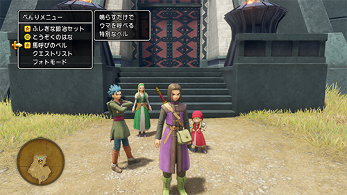 コントローラーの+ボタンを押すと「べんりメニュー」が表示される。好きな場所でウマを呼び出す「馬呼びのベル」を使えるほか、装備品や道具をつくるふしぎな鍛冶も「ふしぎな鍛冶セット」ですぐに始められるなど、便利な機能がそろっている。